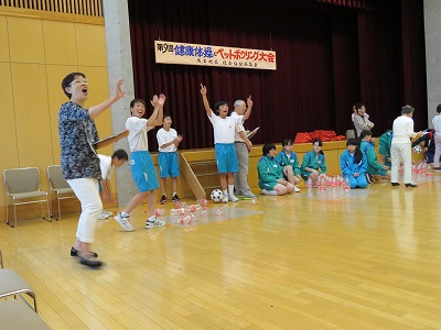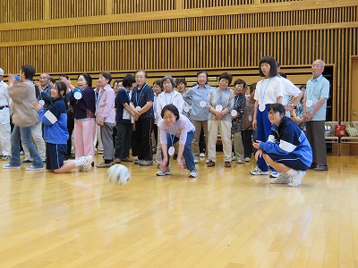 馬宮地区在住の65歳以上の方および馬宮地区老人協議会会員の方を対象に、高齢者の介護予防対策の一環として、 体力向上と健康寿命を延ばすことを目的に、毎年開催している馬宮地区社会福祉協議会主催の恒例行事のひとつです。地域包括支援センター指導による健康講和と簡単な体チェックおよび健康体操を行う「健康教室」とお楽しみ「ペットボトルボウリング大会」の二本立てになっているこの事業は、毎回120名以上の参加がある人気の事業で、平成20年方ずっと継続されています。 最近では、スタッフ側の高齢化も進み、地元中学校の先生と生徒さんにボランティアとして参加お手伝いをしていただいています。若い声援に後押しされて大変に盛り上がり、世代間交流にもなっています。