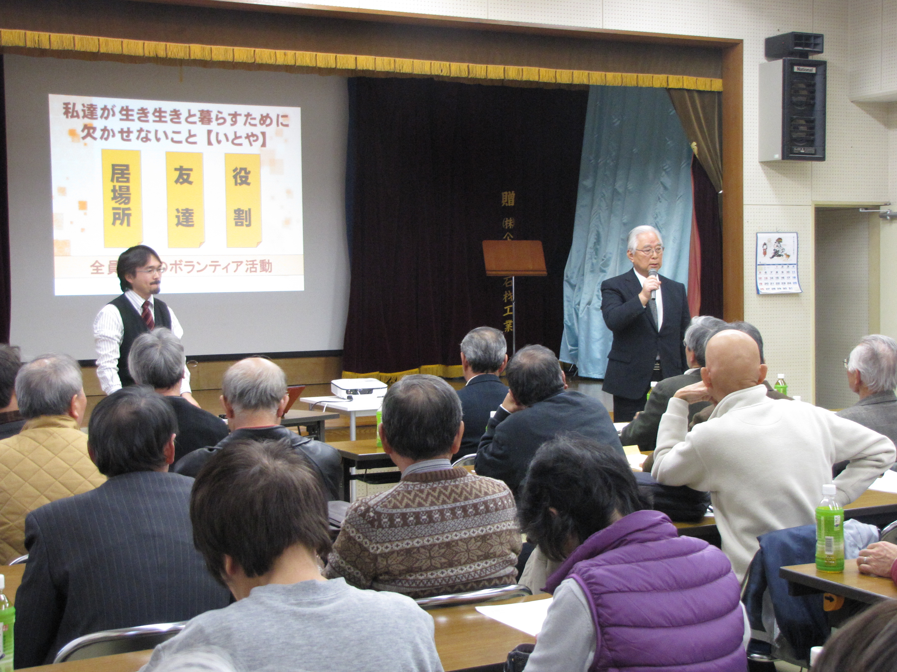 少子高齢化の進む昨今、自分の地域で自分らしく暮らしていくためには、いかに地域ぐるみでボランティアをすすめていくことが必要なのかということを分かりやすく説明していただきました。 高齢化率がますます上がるのは当地区でも例外ではなく、少しでも早急に地域で進めるボランティア制度の組織化が必要と感じました。
